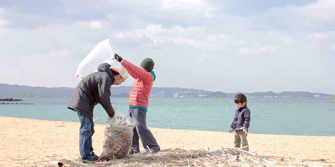 かつて旅人たちが身を清めたこの浜で、私たちは海水を浴びる代わりに、海辺の”けがれ”(ゴミ)を拾い、心身を清めます。